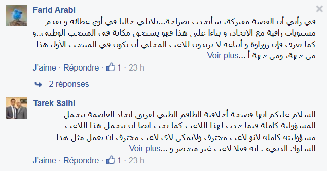 هذا وقال طارق صالحي احد المعلقين " الفضيحة اخلاقية والطاقم الطبي لاتحاد العاصمة يتحمل المسؤولية كاملة فيما حدث لللاعب كما يتحمل اللاعب مسؤوليته عن الخطأ "