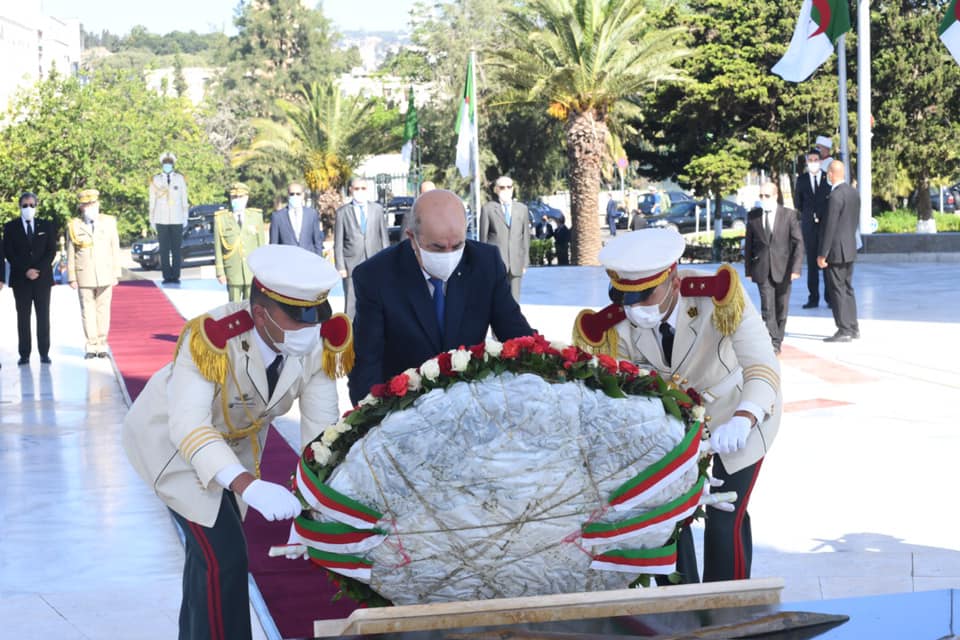 وكان رئيس الجمهورية قد ترحم في وقت سابق من نهار اليوم بمقام الشهيد بالجزائر العاصمة، على أرواح شهداء الثورة التحريرية المجيدة وذلك بمناسبة إحياء الذكرى ال58 لعيدي الاستقلال و الشباب.