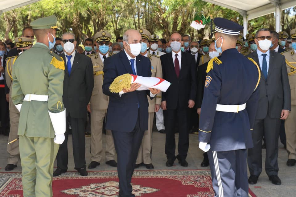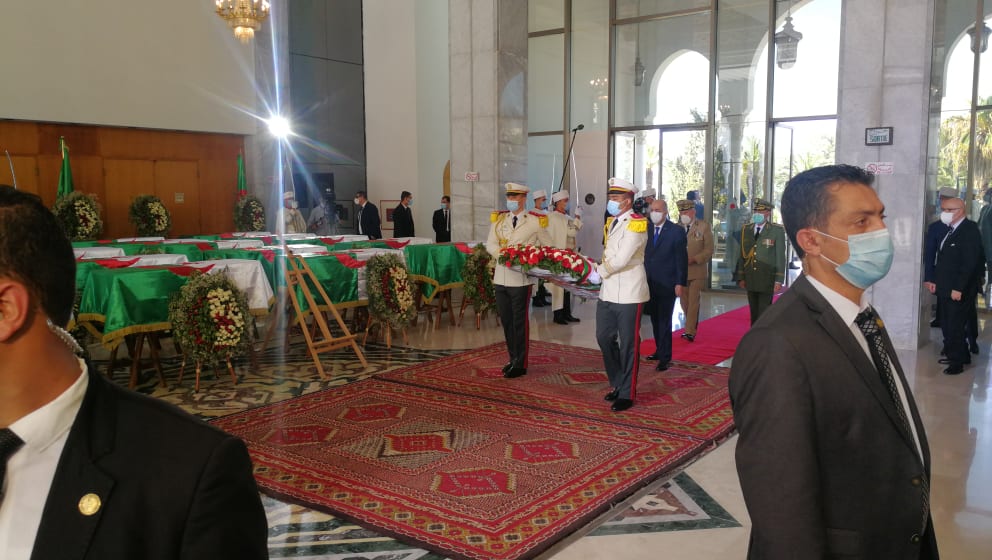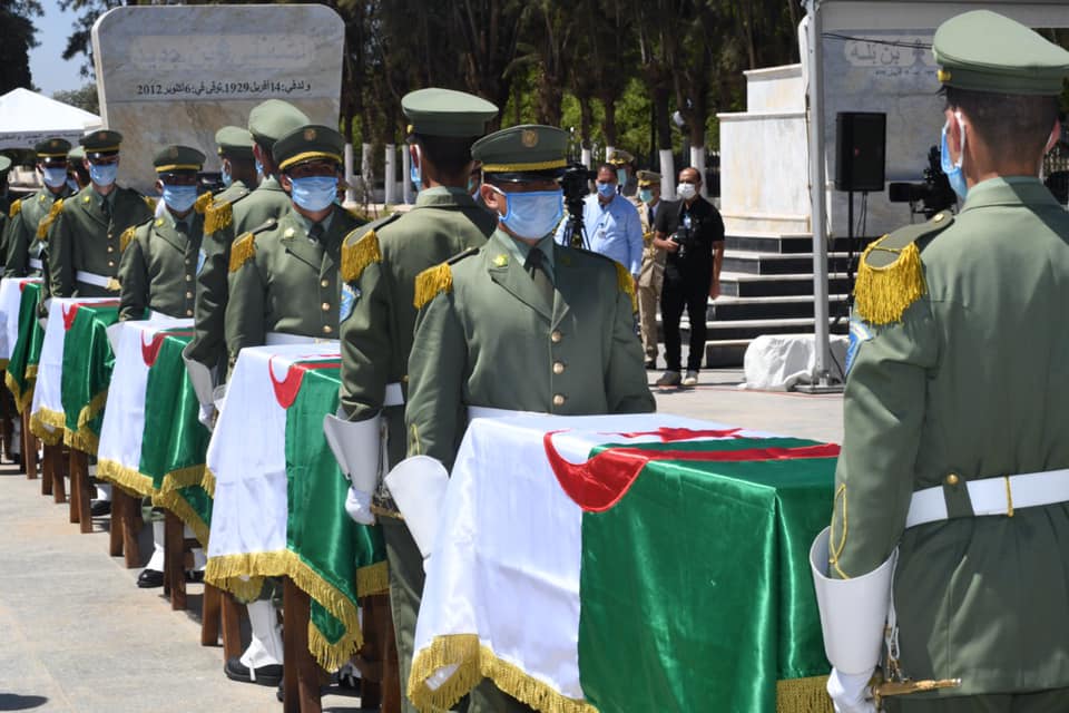 وبهذه المحطة وجد الموكب الجنائزي في استقباله رئيس الجمهورية، القائد الأعلى للقوات المسلحة، وزير الدفاع الوطني، السيد عبد المجيد تبون، الذي قرأ فاتحة الكتاب ترحما على أرواحهم الطاهرة، في هذا اليوم الخالد من تاريخ الجزائر، الذي يتزامن مع الذكرى ال58 لاسترجاع السيادة الوطنية (1962-2020)، التي قاوموا المحتل الفرنسي من أجل استرجاعها قبل عقود طويلة من الزمن.